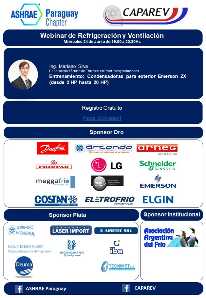 compartimos esta información sobre la 2da. parte de la capacitación de la empresa Emerson organizada por el Capítulo Paraguayo de ASHRAE y será transmitida el miércoles 24 de junio.
