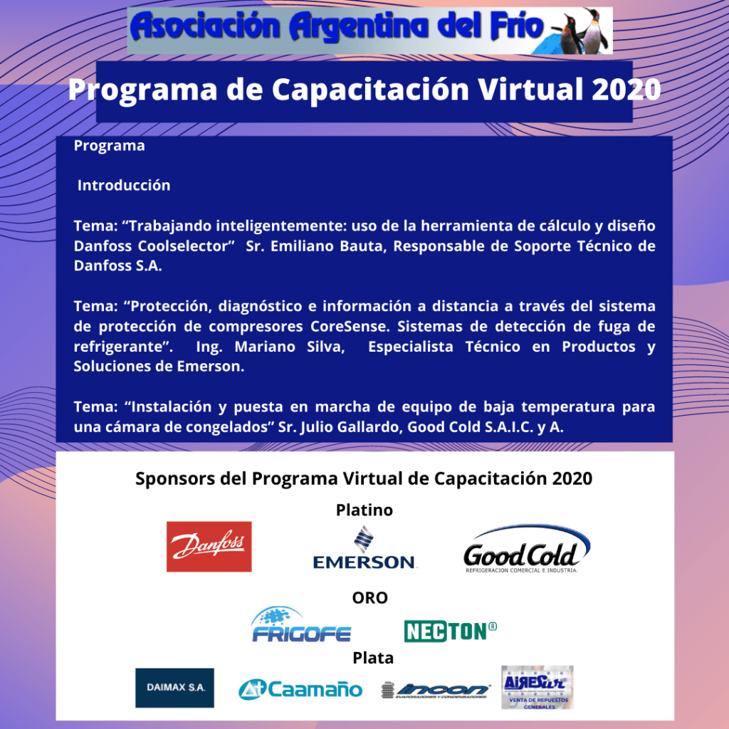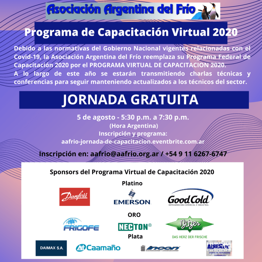 Consulte cómo ser Sponsor de las capacitaciones virtuales en aafrio@aafrio.org.ar / 011 30630011