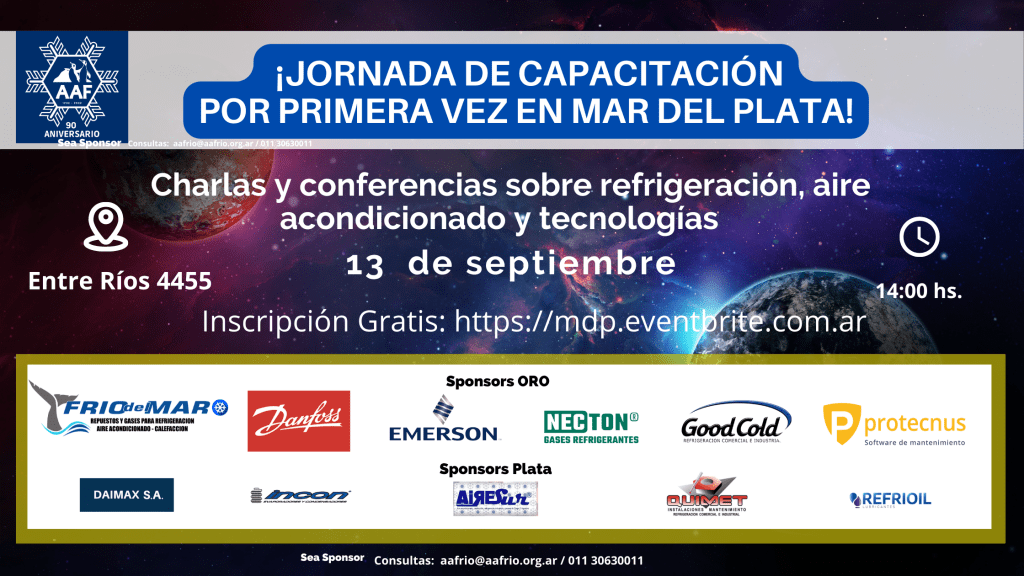 El 13 de Septiembre la Asociación Argentina del Frío, con el patrocinio de Frio del Mar, realizará por primera vez una Jornada dentro de su Programa Federal de Capacitación 2022. Este programa comenzó en Ciudad de Buenos Aires y continuó en Bahía Blanca, Córdoba, Rosario y el XV Congreso Americano junto con la Expo Frio Calor Argentina en el Centro Costa Salguero de Buenos Aires.