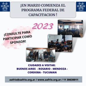 Este año está previsto que el Programa Federal de Capacitación de la Asociación Argentina del Frio comience en el mes de marzo, posiblemente en Ciudad Autónoma de Buenos Aires y continuará con Rosario, Mendoza, Tucumán y Córdoba entre otras.