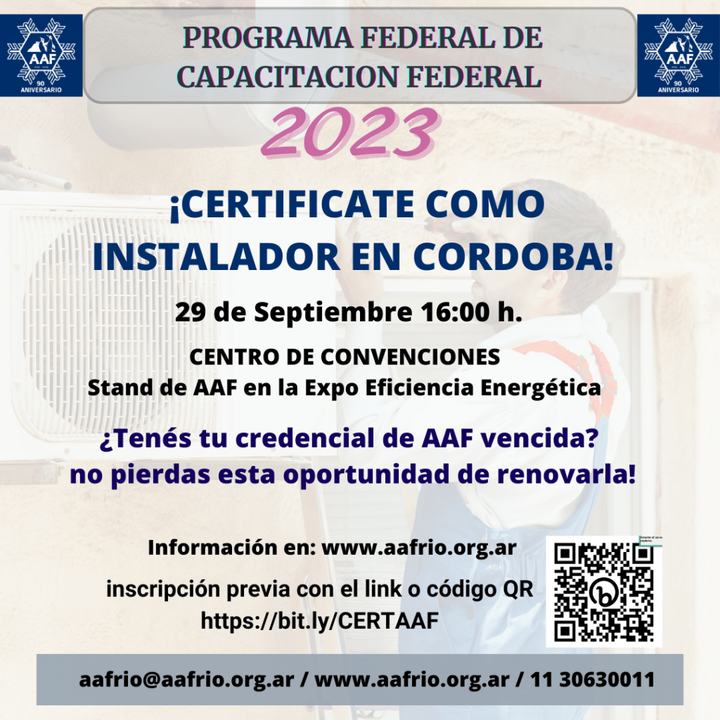 La Asociación Argentina del Frio tomará examen a los instaladores que quieran Certificarse como: