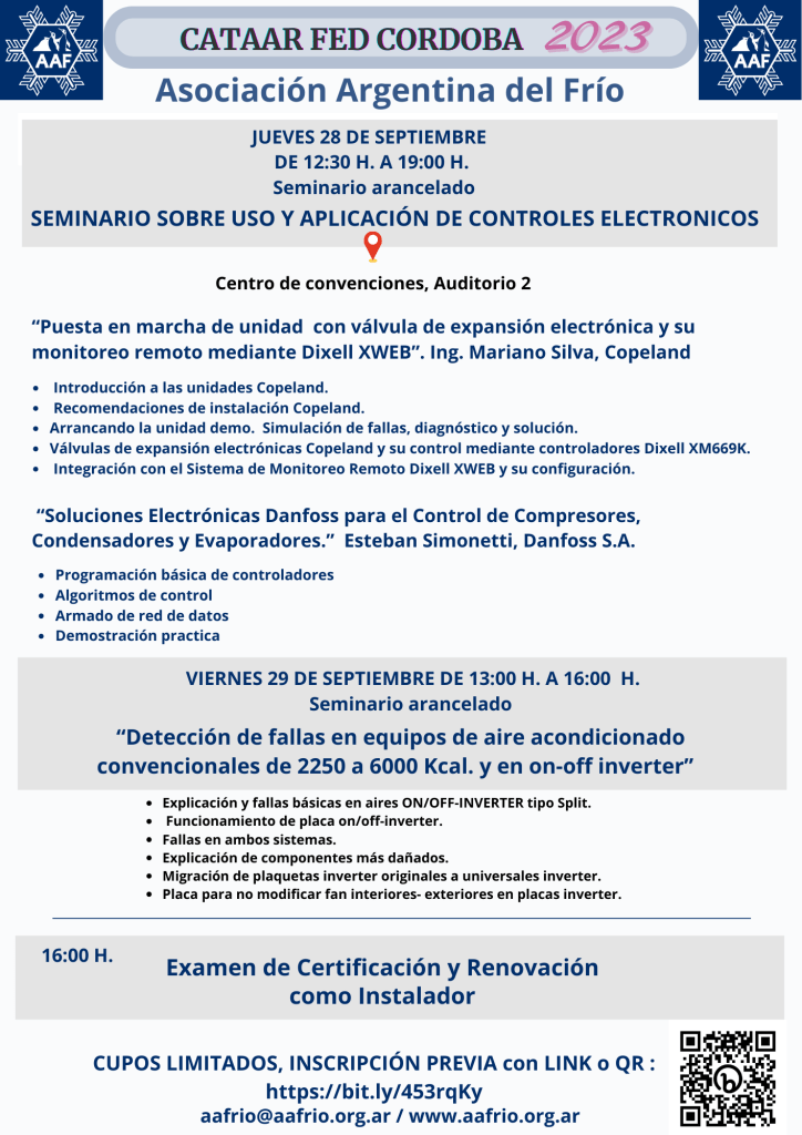 | SEMINARIO SOBRE USO Y APLICACIÓN DE CONTROLES ELECTRONICOS Duración: 6 h. ARANCEL $ 12.000 ARANCEL PARA SOCIOS DE AAF (CON LAS CUOTAS AL DIA) $ 6000 |