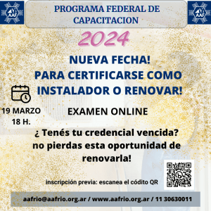 La Asociación Argentina del Frio programó una NUEVA FECHA para tomar examen online a los que quieren Certificarse como Instalador de Equipos de Aire Acondicionado o renovar su credencial vencida.