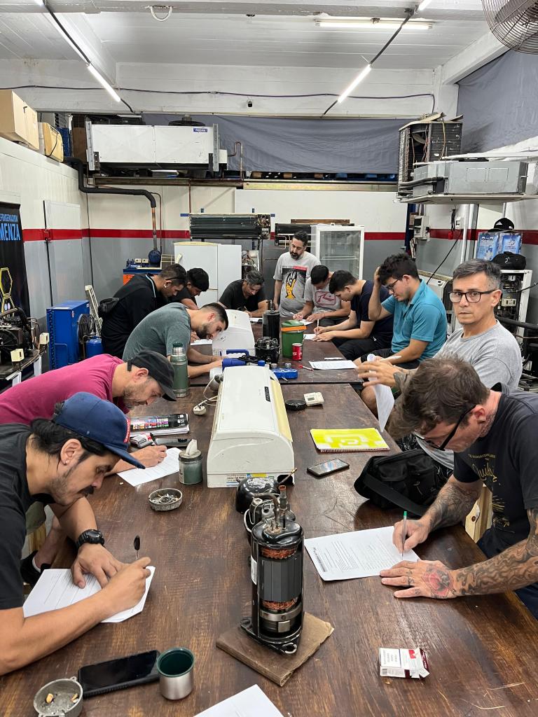 El pasado jueves 28 de noviembre el Protesorero de la Asociación Argentina del Frio, Daniel Traverso, tomó examen de Certificación de Instalador de Equipos de Aire Acondicionado, a un grupo de alumnos del Instituto Seris Refrigeración. Agradecemos a Sergio Martinez, el instructor que nos convocó.