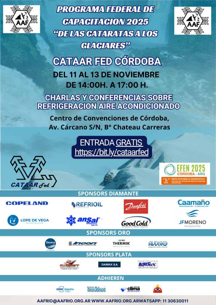 La Asociación Argentina del Frio realizará el Congreso CATAAR Fed Córdoba en la Expo Eficiencia Energética del 11 al 13 de noviembre.