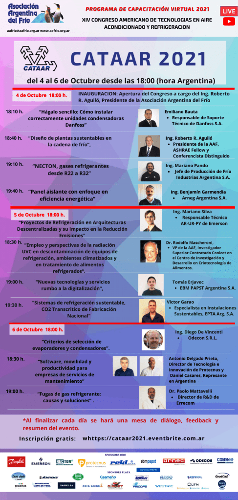 El Congreso CATAAR es el evento más importante que la Asociación Argentina del Frío lleva a cabo todos los años desde el 2008 cuando también tuvo a su cargo la organización del Chapter Regional Conference (CRC) de ASHRAE.